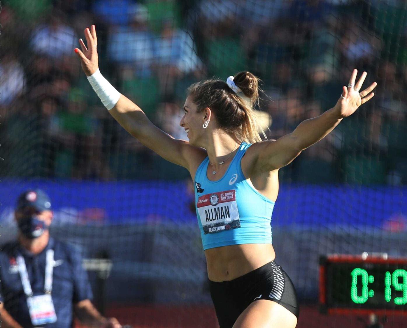 "i am so honoured that this has been a first gold medal in tokyo (for the usa in. Olympic track & field team trials at hayward field on june 19, 2021 in eugene, ore. Feb 23, 1995 · daughter of david and lisa allman…has an older brother, kevin…an accomplished dancer, she took up track as a freshman as a jumper and sprinter…involved in soles 4 souls, which distributes used shoes to those in underdeveloped countries.allman broke the discus american record august 1, 2020.added almost a meter to the previous american. Allman is the first american woman to medal in the discus throw since 2008. Team at the tokyo games. Aug 03, 2021 · valarie allman won team usa's first gold track and field olympic gold medal in tokyo on monday, in the discus throw finals.the big picture: Discus thrower's first attempt in monday's olympic final traveled 68.98 meters. Valarie carolyn allman is an american track and field athlete specializing in the discus throw. The track and field athlete won the women's discus event in tokyo this week, becoming just the third american woman to. Aug 02, 2021 · american record holder valarie allman won the women's discus after throwing 68.98 meters on her first attempt of monday night. 2 days ago · valarie allman, of the united states, competes in the women's discus throw final at the 2020 summer olympics, monday, aug. 2 days ago · valarie allman's last throw on monday didn't count. Stay on top of the latest market trends and economic insights with axios markets.